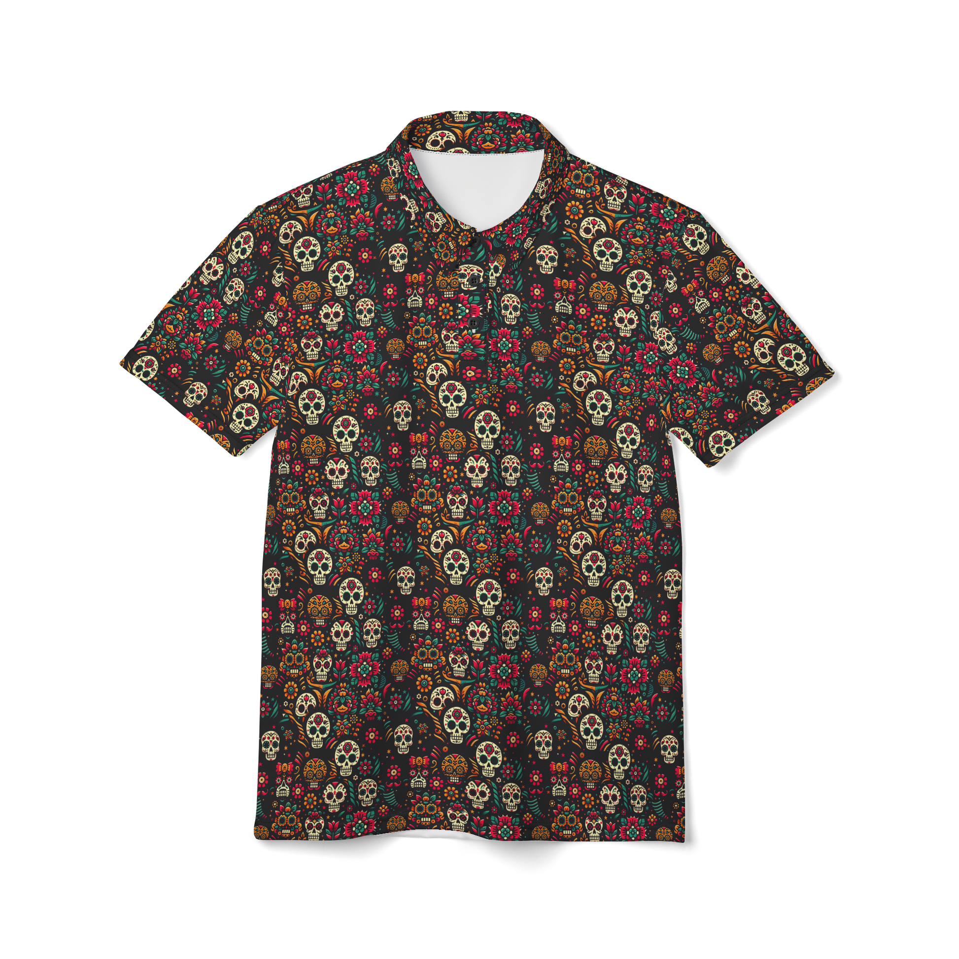 Night Calavera: Dark Skulls Golf Polo